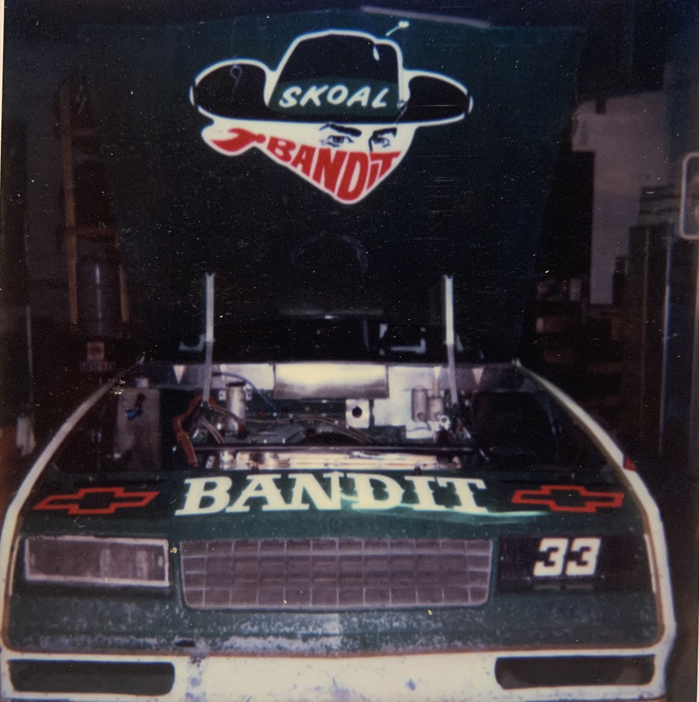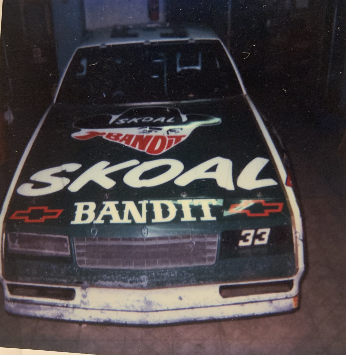 For Tommie Crozier's final two Cup races that took place during the 1989 season he raced this 1987 Banjo Chassis (BP8720R) purpose built road-course Monte Carlo at Pocono and Dover Motor Speedway. Harry Gant drove this race car for Mach 1 Racing during the 1987 and 1988 season at road courses. Crozier purchased it directly from Burt Reynolds at the end of the 1988 season (pictures below of the car the day Crozier purchased it). Upon retiring from racing Crozier put the car away in his garage for many years. The car underwent a mechanical and cosmetic restoration at Rhine Enterprises in Denver, NC in order to preserve its as-raced condition. The Skoal green is still visible in the engine compartment, underneath, and other areas.